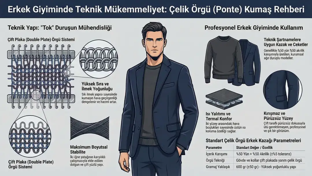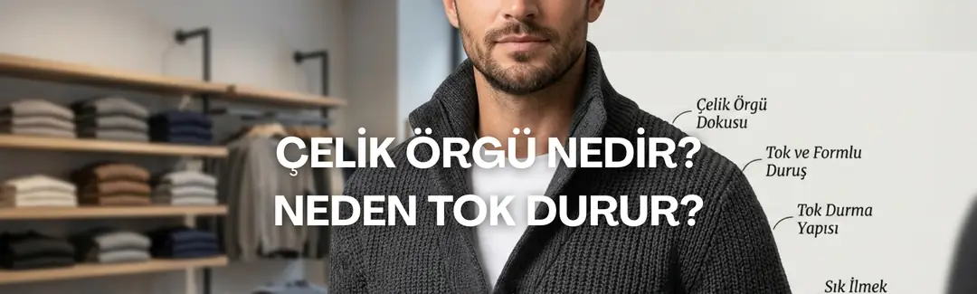 Çelik örgü; yüksek gramajı, sık ilmek yapısı ve dayanıklı iplik kullanımı sayesinde tok duran, form tutan ve güçlü bir görünüm sunan bir kumaş türüdür.